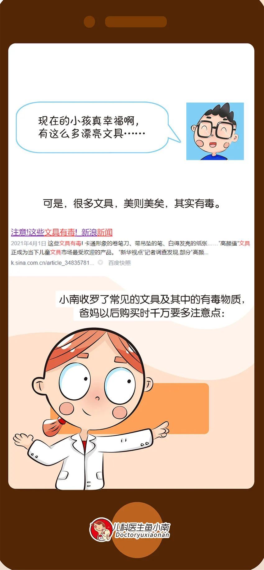 但是孩子不可能不被外面的文具吸引,就需要爸妈做好把关人,除了科学合理买合适的文具,还要提醒孩子,不要去接触别人的有毒文具、让更多同学知道哪些是有毒文具,从而远离它们。