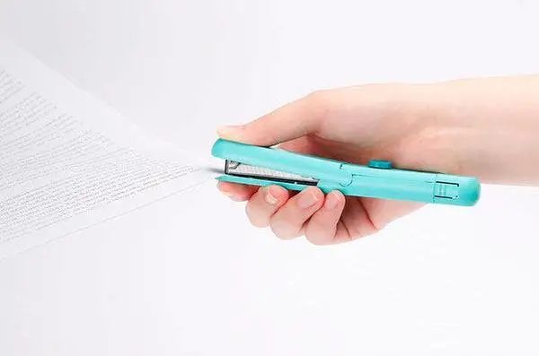 在大众印象中,订书机虽说不上大块头,可总是张开的造型,不好收纳到柜子里、文具盒中,更别提随身携带了。