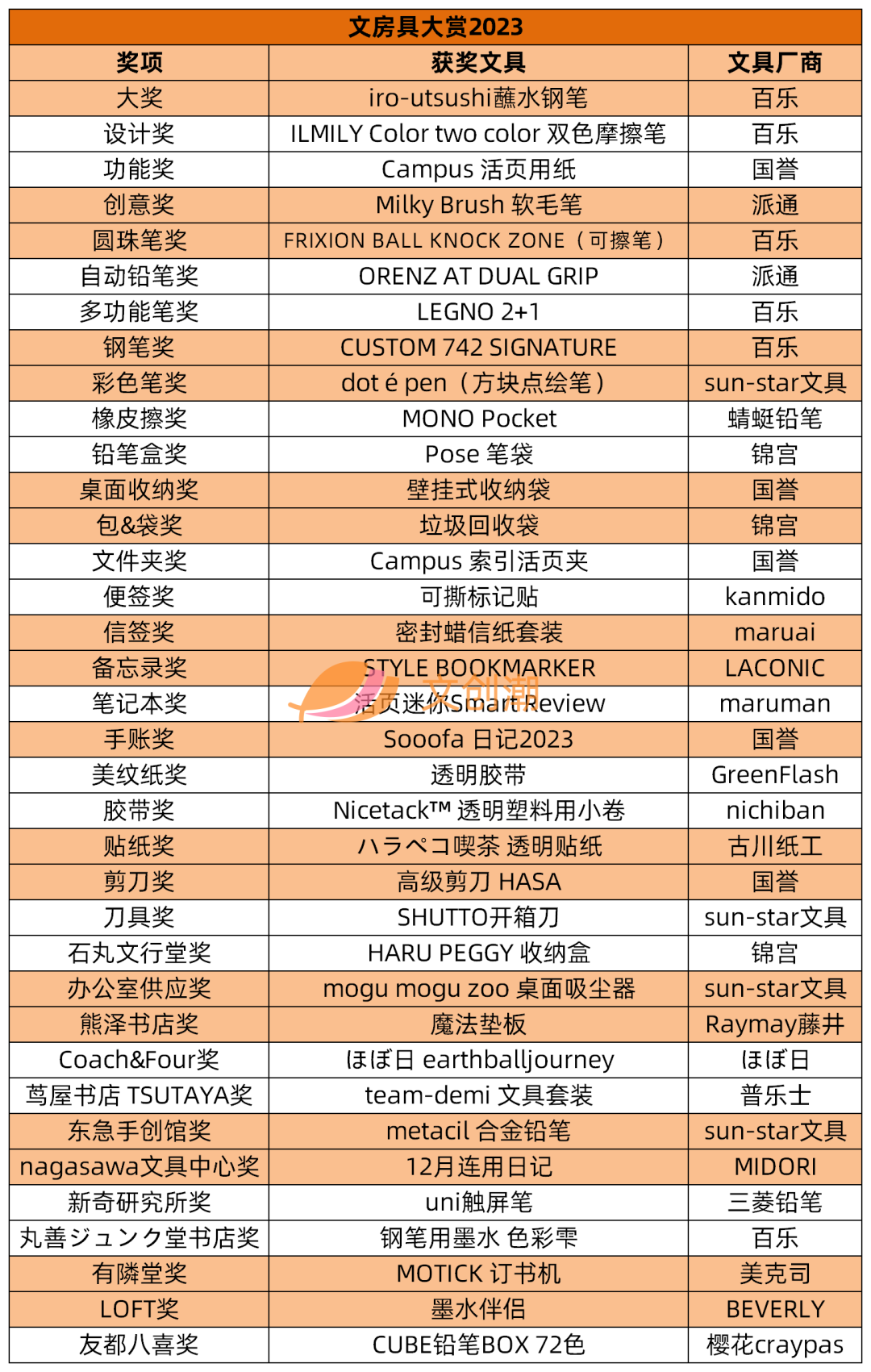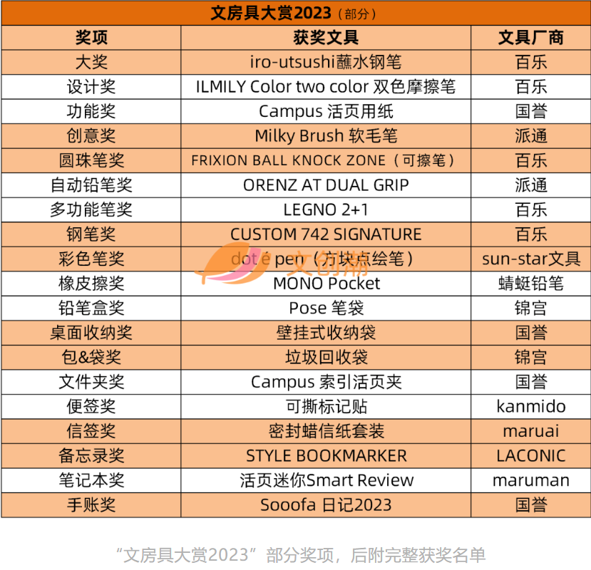 “文房具大赏2023”,是第11届评选,评委来自石丸文行堂、茑屋书店TSUTAYA、熊泽书店、nagasawa文具中心、有隣堂、LOFT、新奇研究所等12家知名文具相关企业,从“最有价值的文具”视角出发,对近一年发售的新文具产品进行推荐和评选。