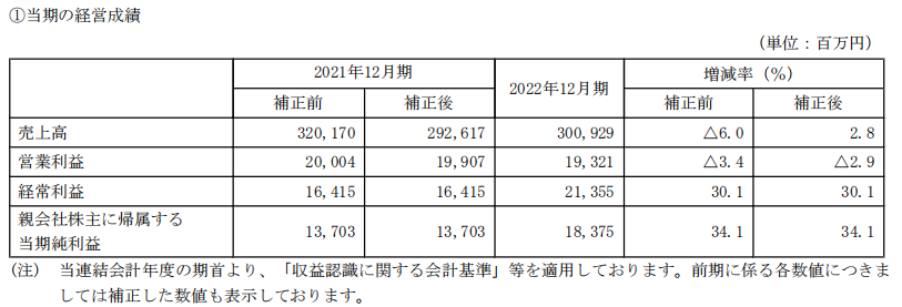 百乐财报显示,2022年12月期全年(2022.1.1-2022.12.31),其销售额1128.5亿日元,同比增长9.5%;营业利润212.44亿日元,同比增长9.9%;当期纯利润157.73亿日元,同比增长10.5%。全面增收增益。