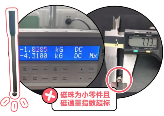16批次样品的磁环、磁珠等部位可完全容入小零件试验器,且实测磁通量指数为167.5kG2mm2—871.3kG2mm2,超过标准中磁通量指数应小于50kG2mm2的要求。(GB 6675.2—2014《玩具安全 第2部分:机械与物理性能》)