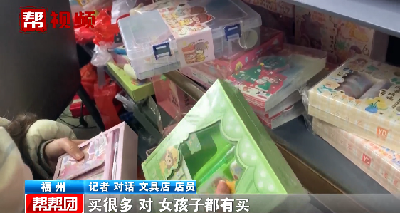 记者来到了福州仓山区胪雷小学附近的文具店。店内的文具及玩具琳琅满目,店员表示,目前在小学生中最流行的就是手账了。手账周边不仅有各式贴纸、本子,还有专门配套的使用工具,例如点胶笔,镊子、笔刀等。