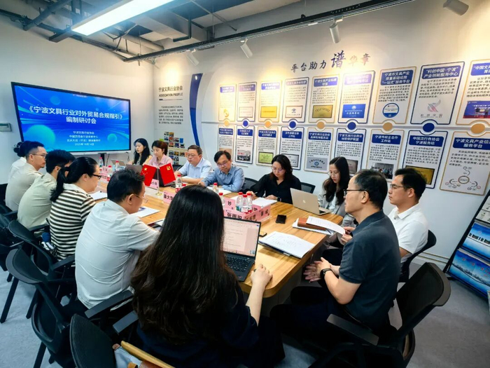 10月14日上午,宁波文具行业协会联合中国贸促会宁波调解中心、北京大成(宁波)律师事务所在协会会议室召开《宁波文具行业对外贸易合规指引》编制研讨会。中国贸促会宁波调解中心副科长董峰出席会议,北京大成(宁波)律师事务所的常军帅、甄小峰、黄妙等6位专业律师和康大、贝发、广博、天虹、赛龙等龙头企业代表齐聚一堂,围绕《指引》初稿展开深入研讨,共谋宁波文具产业高质量“出海”新路径。