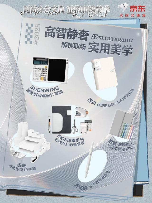 追求理性与质感的职场人,不妨选择京东的“高智静奢”气质文具,解锁职场实用美学。齐心x探索系列极简办公套装采用莫兰迪色调,低调简约中尽显高级质感;纽赛深泽直人大师系列笔记本集时尚外观与实用功能于一体,纽赛简约桌面13件套装更是“收纳神器”;此外,SHENWING智能语音桌面计算器运算精准,暗藏高效办公巧思;西玛升级搭扣款A4/40页资料册可轻松实现文件资料规整收纳;斑马牌速干减振刷题笔以素白外观呈现高端时尚感,满足日常办公记录需求。