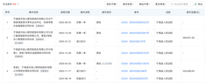 截至目前,华信小贷存在涉及的司法案件345条,其中92.5%为原告,涉及借款合同纠纷、借贷纠纷等,不难看出,华信小贷正陷入“追债忙”的局面。