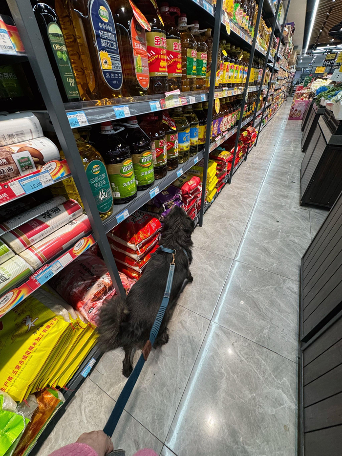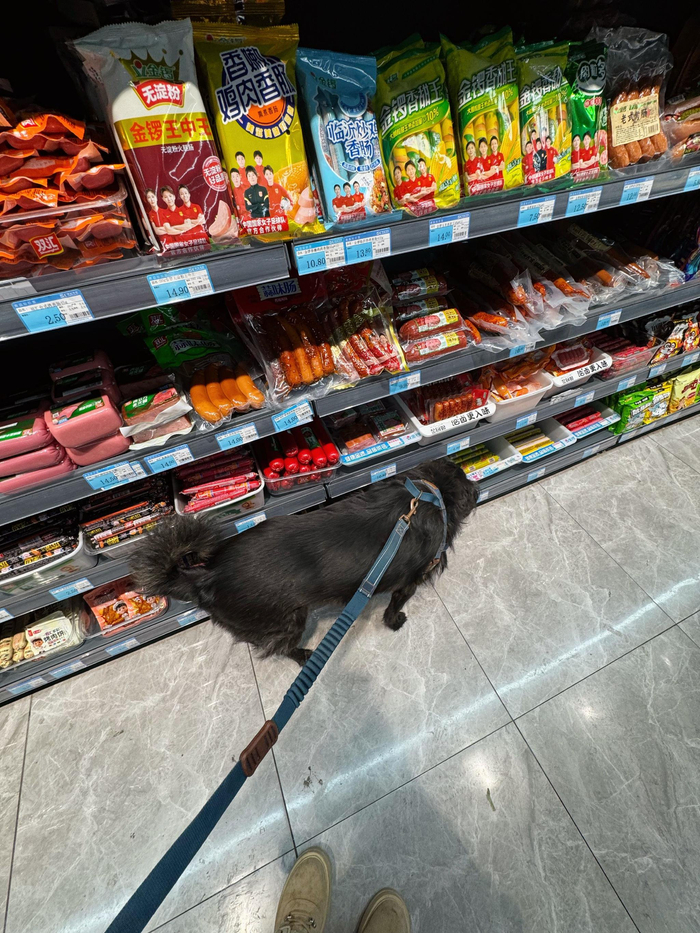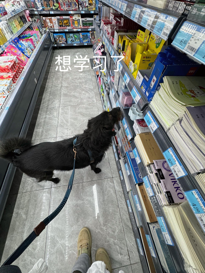 小狗打着看文具的藉口进入超市,然后直奔火腿肠!