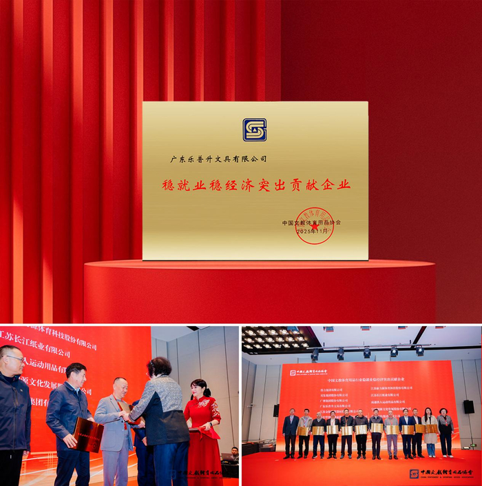 乐普升文具凭借其在履行社会责任与推动行业发展方面的持续投入,获颁中国文教体育用品协会“稳就业稳经济突出贡献企业”奖项。